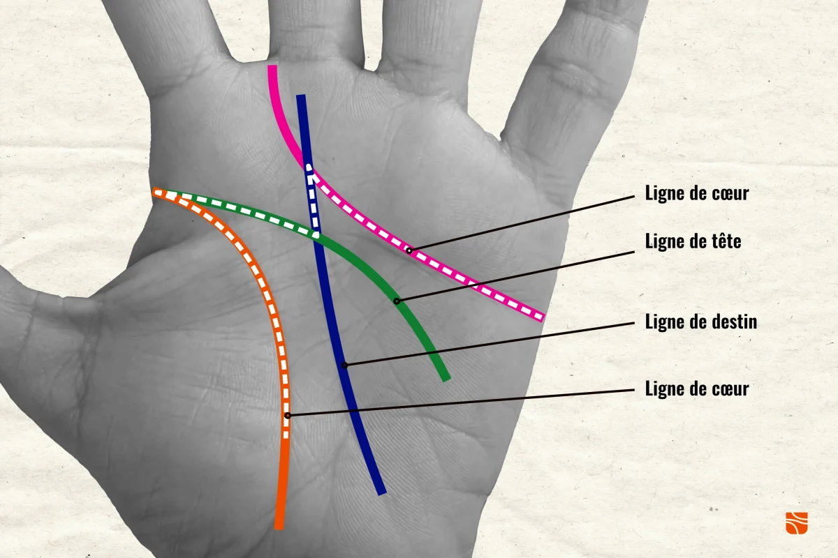 Regardez le creux de votre main dominante. Si vous distinguez une ligne de vie, de tête, de cœur et de destin, vous avez très probablement ce M. Mais l’important, c’est ce que chacune de ces lignes dit de vous — pas la lettre qu’elles dessinent ensemble.